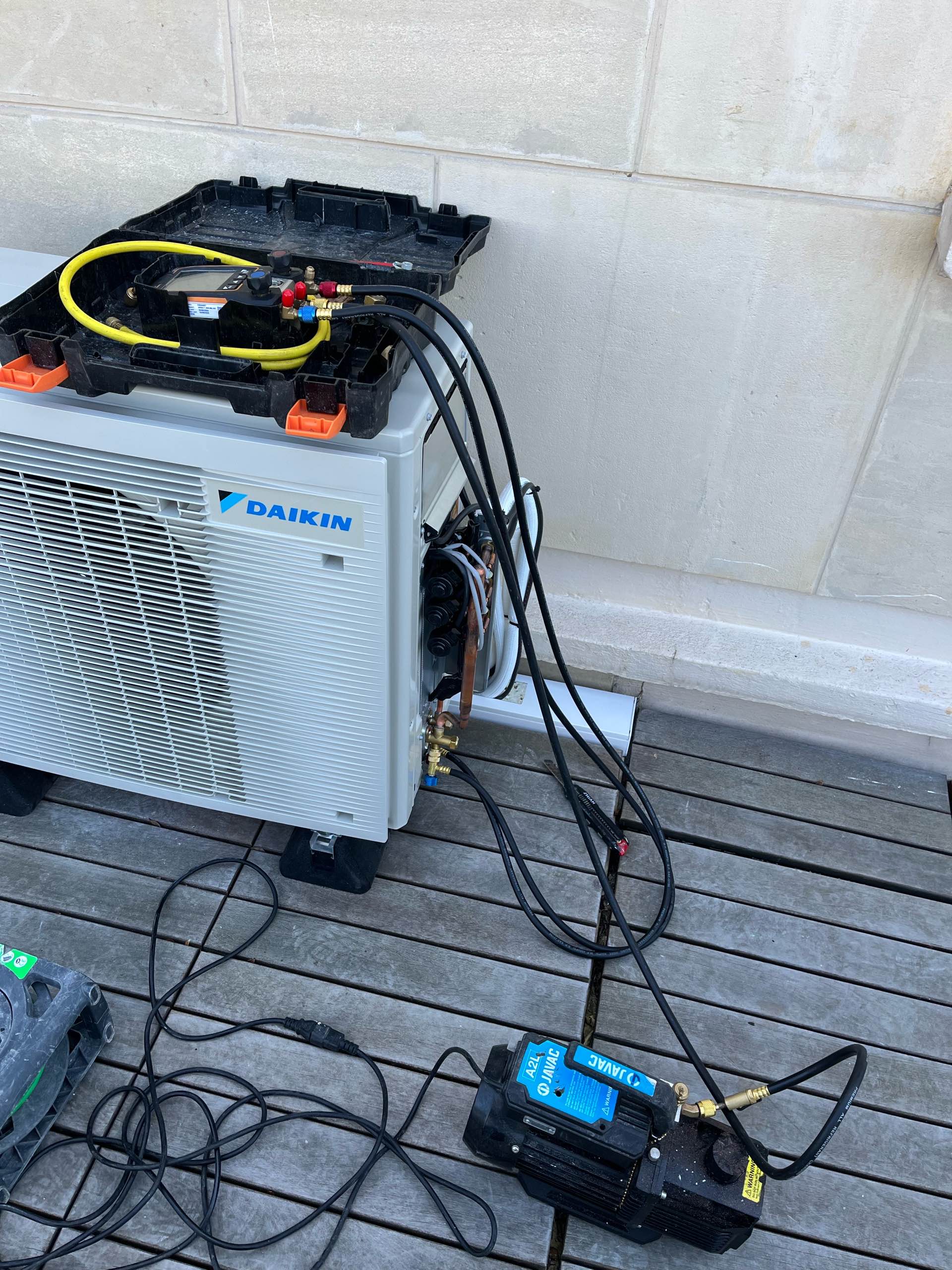 L'installation d'un système monosplit (une unité intérieure + une extérieure) prend généralement entre 4 et 6 heures. Dans le cas présent à Dourdan, l'intervention complète a été réalisée en une journée, incluant la mise en service et la formation du client.